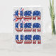 Red, white and blue card with fireworks and a large flag design USA on the front written three times. Very bright and cheerful design, perfect for the July 4th. holiday. Thanks to Commercial Use Scraps for the purchased USA design.