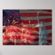Happy Independence Day : Firework, American Flag and Statue of Liberty. Photography and digital design on Poster