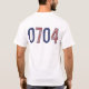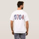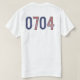 Numbers 0704 Typography American Independence Day Text with Red White and Blue Stars and Stripes Stylish Patriotic 4th of July Shirt, text on back and pocket,