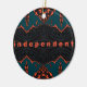 Show your values. Parametric / algorithmic / fractal pattern in orange and dark green. Simple statement text.