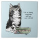 A cute maine coon tabby kitten in a backdrop of blue wanting to be fed but is fiercely independent