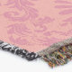 A quality printed throw has its advantages. This is a much finer weave throw than its loopier cousins, and though lighter, it is worth the investment for custom room accessorizing. The back is much prettier than the typical brown, and the fringe on the long sides very vivid, the selvage nicely done. Before photographing, I washed the throw in cold water, delicate, with a thicker woven throw the same size. On tumble dry low, this throw was dry in half the time as the other. This is a very practical quality if you use throws for furniture covers or to wrap up in frequently. The sleekness of the fabric makes it a great layer for accenting or protecting without the feeling of sitting on too much stuff. Perfect for napping or when you feel a light chill coming on. The color printing is beautiful and on this fabric, matched the design and color of my Photoshop image. This is an advantage for blending room fabrics and colors. The fringe on the short sides prints the colors from the design image and therefore varies from the side fringe. I streaked a white fractal line through the plaid pattern to give the illusion of weaving. This printed as crisp as an illusory thread, and put some white in the short side fringe, showing another advantage of print vs loomed- for artistic purposes, line lines, detail, and color integrity can be planned and preserved. My loomed throws have color limitations and more of a needlepoint texture. Print throws reproduce an exact image. The throw felt a little stiff straight out of the package, but this went away in the first delicate wash. Of course I searched the wash water for ink or bleeding and there was none.