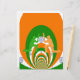 The artwork features an abstract, layered design incorporating the colours of the Indian flag: saffron (orange), white, and green. These colours are arranged in swirling, concentric patterns, creating a sense of movement and energy. Silhouettes of two cricketers in batting stances are positioned within the design, one rendered in green and the other in saffron. Several Ashoka Chakras, the blue wheel from the centre of the Indian flag, are integrated into the white bands of the design, adding a nationalistic element. The overall effect is a dynamic and symbolic representation of Indian cricket.
