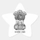 In the emblem adopted by the government in 1950 only three lions are visible, the fourth being hidden from view. The wheel appears in relief in the centre of the abacus, with a bull on the right and a galloping horse on the left, and outlines of Dharma Chakras on the extreme right and left. The bell-shaped lotus beneath the abacus has been omitted.