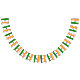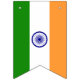The Indian flag is a charged horizontal tricolour with in the middle an emblem. The used colours in the flag are blue, orange, white, green. The proportion of the Indian flag is 2:3. The Flag of India was adopted in 1947.