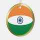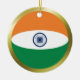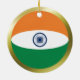 Both sides of this ornament feature the flag of India morphed into a circle with a golden rim. Simple Indian decoration for your home.