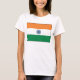 The front of this t-shirt boldly displays the Indian flag with its distinctive blue circular motif in a white band with an orange band above and green band below. This is matched at the back by an attractive map of India.