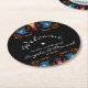Indian Elephant Floral Black Wedding Round Paper Coaster