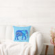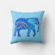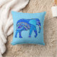 Pillow in an illustration of a richly embellished Indian elephant, in an arabesque pattern, in shades of cobalt blue and turquoise