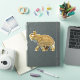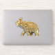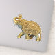 Custom-cut vinyl sticker with an image of a vintage golden Indian elephant with a ball in its upturned trunk. The elephant is adorned with anklets, a coat and cap of flowers and the symbol of Om, the sacred syllable that is chanted in Hindu and Buddhist prayers and mantras. See matching round sticker, favour tag, label and wrapping paper. See the entire Enlightenment Favour & Gift Tag collection in the SPECIAL TOUCHES | Party Favours section.