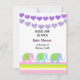 A cute design featuring purple strings of hearts and baby Indian elephants accented by a border of soft stripes. Customise with all of your baby shower information as desired.