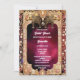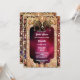 A stunning watercolor background has an opulent frame around a rich burgundy wine red background. The frame has delicate ornate gemstones in various pastel colours on it and two trendy golden brown and pink elephants are standing back to back at the top of the frame. They are divided by dangling pearls encrusted with rich brocade detail. White custom text templates for your personalised wording appear below the elephants for your personalised wording. The back has the same design and extra templates for additional information you may want to provide your friends and family with. If this template is not required, simply delete the wording. This elegant, regal and royal design is ideal for any traditional Hindu bridal shower; Ethnic Asian celebration or Hindi event.