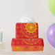 Indian lace ornament design with elephant and round shapes decoration on red background