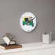 The clock did not take as long to arrive as I thought it might and was extremely well packaged. I didn't do the measurements so I didn't realize it is a little smaller than the average clock but that does not matter (just make sure you check if that's important to you).It is really nifty! It seems very solid and well made not flimsy at all. It has been going well and has kept good time in its few weeks on my wall. Nice product. Gets noticed too! Nicer in real life than the picture but true to the picture