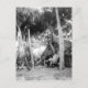 Old late 1800s photo of men relaxing near tiki huts with palm frond roofs. Dawson's, Gem Island, Indian River, Florida. Photo taken between 1880 and 1897 by photographer William Henry Jackson.