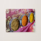 Indian Spice Pots on Pink and Gold Sari Jigsaw Puzzle
