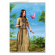 3D digital render of a beautiful native American woman with a pink bird in a green forest