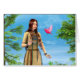 3D digital render of a beautiful native American woman with a pink bird in a green forest