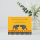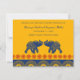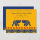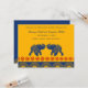 These wedding save the date cards offer a modern take on traditional Indian wedding ceremonies and receptions with their bold colour palette of golden yellow, red and royal blue. The save-the-dates are accented by a geometric motif and feature illustrations of elephants in royal blue.