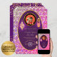 This modern exotic Indian couples invitation can be used for engagement, rehearsal dinner, wedding as desired. It features wonderful pink blue and gold and purple shades and lit lanterns, strings of lights and sparkles and a modern trending ampersand symbol. The cute bride and groom cartoon is original art by LeahG.
