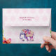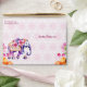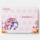 Indian wedding ornate elephant with pink flowers pink mandala pattern background personalised envelope, pretty decorated Indian elephant pink flowers modern watercolor envelopes.