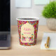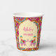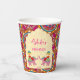 Playful Indian wedding elephants pink mehndi paper cups personalised name mehndi paper cups, pink cerise rangoli pattern background, cute wedding elephants monogrammed paper cups for your tea station customised paper cups for mehndi celebration Indian wedding paper cups personalised Indian wedding decor Mehndi tableware