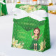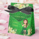 Indian wedding Mehndi and Sangeet green and gold with cute bride cartoon caricature whimsical mehndi thank you favor box template. Green themed mehndi sangeet wedding mehndi favor boxes