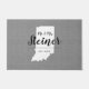 Modern farmhouse personalised doormat with your family name inside your state map. Faux burlap canvas texture background. Click Customise It to add your own text and images and create a unique one of a kind design!
