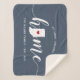Show some home state pride with this cute rustic blue throw blanket featuring "home" in white calligraphy script lettering with a silhouette map of the state of Indiana standing in for the letter "O." A red heart illustration inside the state map completes the design; you can change the position of the heart to your home city by opening the design tool and dragging the heart shape to your favourite spot. Personalise with your home city, family name and year established to create a perfect and memorable housewarming gift or addition to your new home.