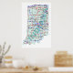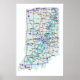 The Indiana Interstate System with labelled interstates and state name in shadow.