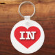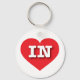 This key chain features a vibrant red heart containing the bold, white, upper case letters IN, the official abbreviation for Indiana, the hoosier state.