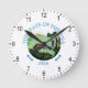 The clock did not take as long to arrive as I thought it might and was extremely well packaged. I didn't do the measurements so I didn't realize it is a little smaller than the average clock but that does not matter (just make sure you check if that's important to you).It is really nifty! It seems very solid and well made not flimsy at all. It has been going well and has kept good time in its few weeks on my wall. Nice product. Gets noticed too! Nicer in real life than the picture but true to the picture