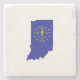 A stone drink coaster featuring the state flag of the Hoosier state of Indiana in the map shape of the state.