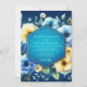 A deep indigo backdrop frames a vibrant arrangement of creamy yellow and sapphire blue blooms. This design evokes a romantic, dreamy atmosphere with its lush botanical elements. Delicate petals and swirling leaves create an enchanting visual.