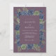 A deep indigo and dusty blue floral arrangement creates a romantic, vintage feel. Lush roses and botanical greenery intertwine, evoking an enchanted atmosphere perfect for a sophisticated celebration. The rich colour palette suggests an elegant, possibly autumnal, event.