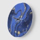 Indigo Blue Agate Marble Abstract Name Monogram Large Clock