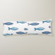 Body pillow with cute and modern watercolor swimming fishes pattern in indigo blue and teal colour and white background.