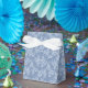 A chic Tent Favour Box, with typically Indian-style floral print in Indigo Blue on washed out Denim Blue, outlined in White. Part of the Posh and Painterly 'Indigo' collection, this pattern can easily be adjusted to fit any Favour Box.