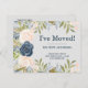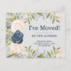 Pretty indigo/navy blue and blush pink watercolor floral and greenery Change of Address/Moving announcement postcard.