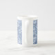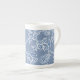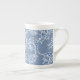 A pretty Bone China Coffee Mug, with a typically Indian-style floral print in Indigo Blue on washed out Denim Blue, outlined in White. Part of the Posh and Painterly 'Indigo' collection. This pattern can easily be adjusted to fit any Mug.
