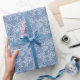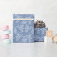 A roll of pretty Wrapping Paper, with typically Indian-style floral print in Indigo Blue on washed out Denim Blue, outlined in White. Part of the Posh and Painterly 'Indigo' collection. This pattern can easily be adjusted to fit any Roll of Giftwrap.