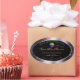 The design features a bright shimmering indigo dye blue purple glitter frame with tiny glitzy stars on a plain black background.