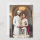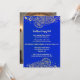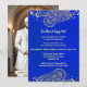 An elegant wedding reception only, post or after wedding invitation featuring gold stylised henna patterns printed on a watercolor indigo and royal blue background. On the back is your custom photo with QR code template. The rectangle background under the URL text can be scaled in the advanced editor. Beautiful for an Indian or Arabic style wedding celebration.
