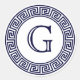 Indigo Blue and White Round Greek Key Monogram Envelope Seals, Favour Tags, Stickers