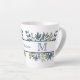 Indigo Blue Leaves Border Monogram Latte Mug