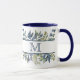 Indigo Blue Leaves Border Monogram Mug