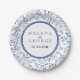 Indigo blue leaves pattern wedding paper plate. A beautiful floral pattern made of leaves in indigo blue and a white frame with scalloped blue outline that holds your wording are the elements of this paper plate.