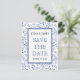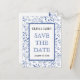 Indigo blue leaves pattern wedding Save the Date Announcement Postcard