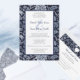A celebration of love! A floral wedding invitation with a pattern of meadow wildflowers in deep indigo blue. The meadow wildflowers create a delightful border, their natural beauty framing the text, which adds a touch of sophistication to the design. The result is an invitation that perfectly balances the rustic charm of the countryside with a touch of timeless elegance. A decorative script font is used for the couple's names with an ampersand in between.