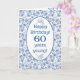 A very pretty 60th Birthday Card, with an Indigo Blue floral pattern on the front cover and a Faux Lace trim on the inside, where you can also personalise the message. This design is part of the Posh and Painterly 'Indigo' collection and can easily be adjusted to fit any card size.
